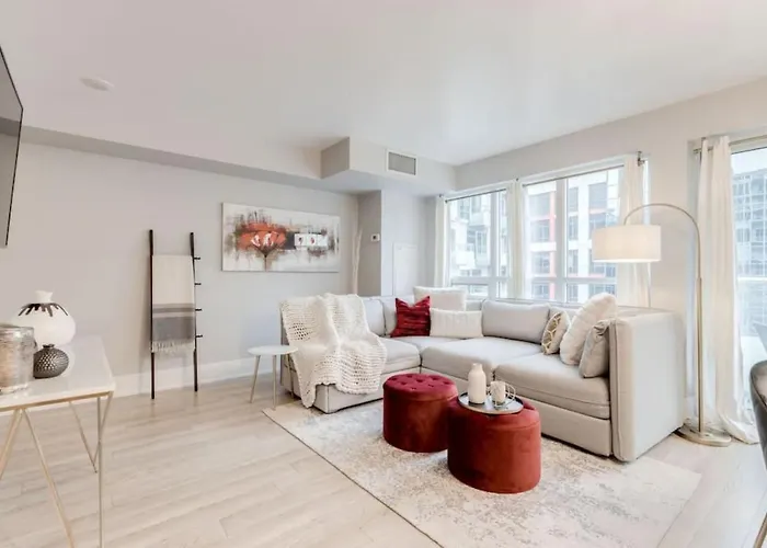 La Villa Stunning 1Br And Den Sleeps 6 Steps From Cn Tower Toronto está situada a 5 minutos a pie del Estadio Rogers Centre y ofrece a los huéspedes relajarse con un jacuzzi.